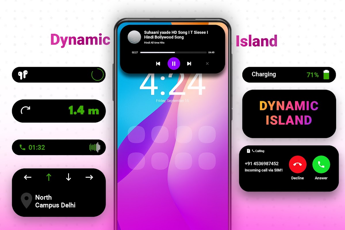 Introducing Dynamic Island Notch – Bring the interactive notch feature from iPhone 15 , iPhone 14 and iOS 16 to your Android phone!