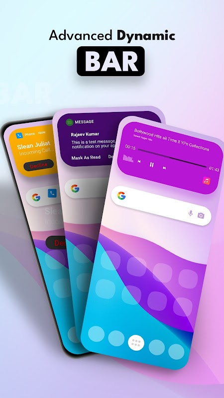 dynamicBar is an interactive pill like cutout that sits on your phone and presents you with a practical and elegant notification bar.