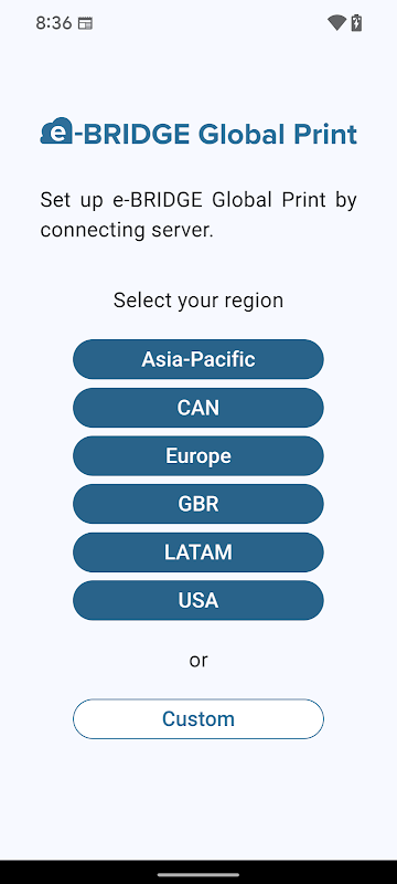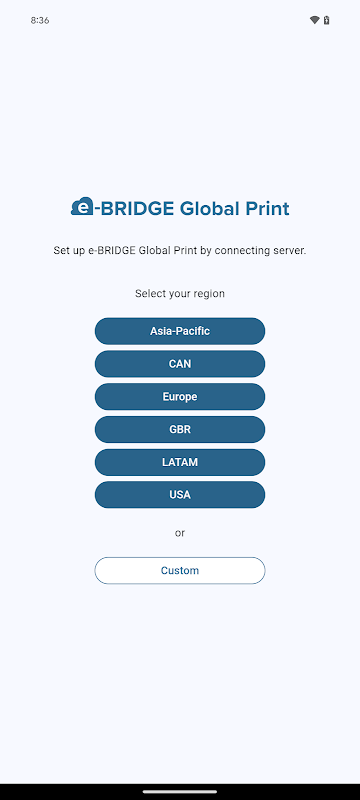 After installing the app, you will register with the e-BRIDGE Global Print system by logging in with your work or school account; this allows us to associate you and your company with your print jobs. Once registered, you will be able to print directly to your e-BRIDGE Global Print cloud queue.