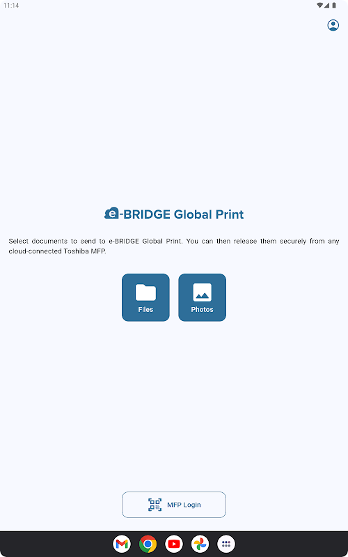 The e-BRIDGE Global Print allows you to submit a print job from your smartphone to your organization's cloud print queue, and then release it from any of your e-BRIDGE Global Print connected MFPs.