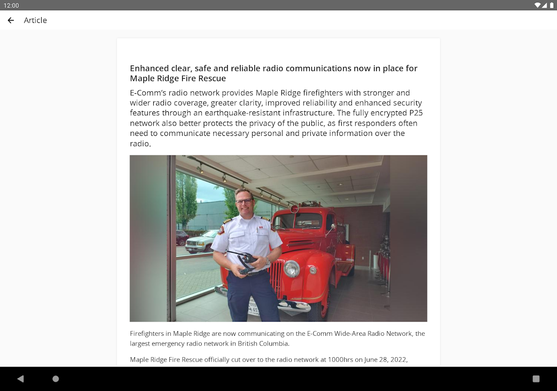 E-Comm is the first point of contact for 9-1-1 callers in 25 regional districts in British Columbia, provides dispatch for more than 70 police and fire departments and operates the largest multi‐jurisdictional, tri‐service, wide‐area radio network in the province.