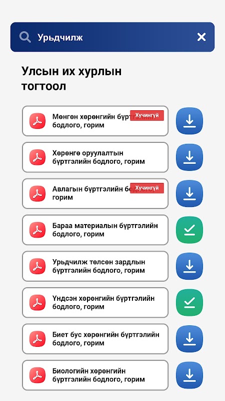 Энэ аппликейшн нь газар нутаг, орон зайнаас үл хамааран цахим хэлбэрээр Байгаль орчны салбарын хууль, дүрэм, журам, жагсаалт, стандарт, сайдын тушаал, захиргааны хэм хэмжээ тогтоосон актыг интернэтэд холбогдоогүй буюу офлайн хэлбэрээр харах боломжтой.