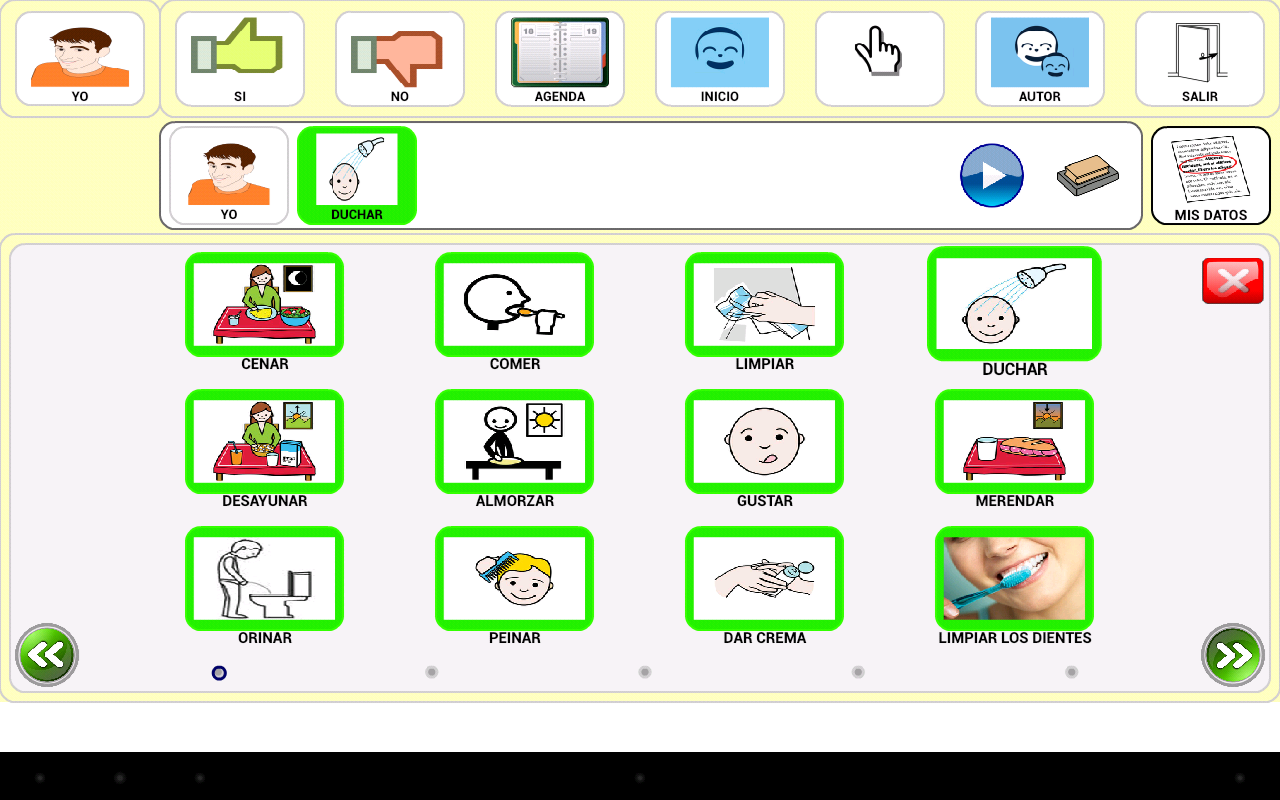 The evaluation with real users continued over a nine month period considering parameters such as the adaptation of pictograms, the size of the photos, the motor capacity of the user, real communicative utility and not so much a recreational tool, the manageability and educative functionality, among other aspects. The agenda is emphasised among the new features incorporated after the evaluation with the users, in which the user can locate a temporary planned sequence of up to six activities a day, a week or a period of time.