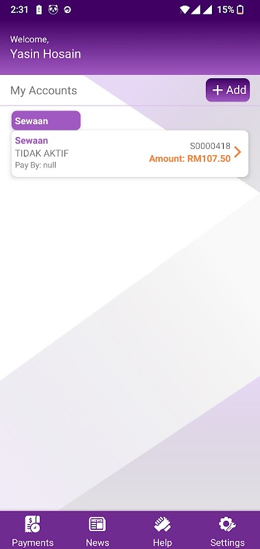 e-MPJ is an app for customers of Jasin Municipal Council