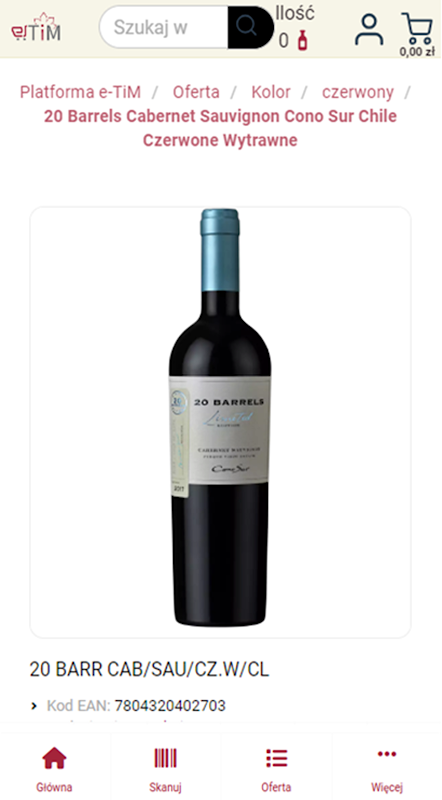 This is the easiest way to make purchases, on the platform created by TiM S.A. - a leading wine distributor in Poland. Now adding products is child's play. Just scan the EAN code available on the product and the selected product will be automatically added to the shopping cart.