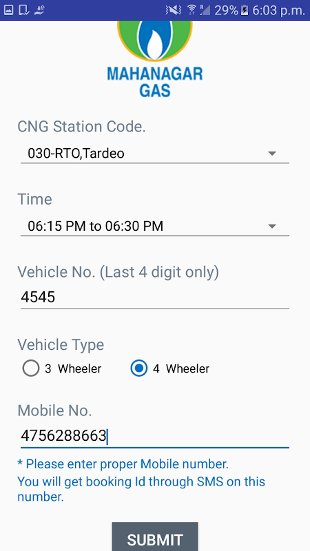 e-Tokens are issued so that you do not have to waste your valuable time standing long in the queue for filling gas. You can choose a time of your convenience (in an interval of 15 minutes) the system will assign you a queue as per your request or the earliest possible time. The token will be delivered by SMS to you, so please enter your mobile number correctly. Just show the SMS to the CNG Station queue controller and you will be allowed to fill the gas. Currently this facility available for the CNG station adjacent to RTO Tardeo.