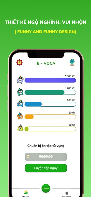 - Thiết kế ngộ nghĩnh và thân thiện giúp cho người học cảm thấy thoải mái khi học, từ đó làm tăng hiệu quả ghi nhớ từ vựng.
