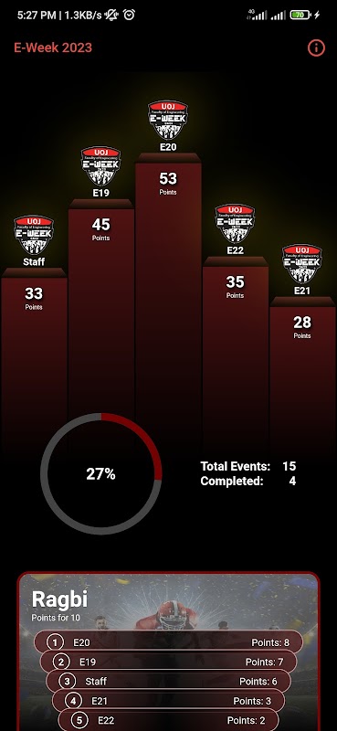 E-week UOJ is the app to show the all team's progress of each events. and receive notifications about the events also.