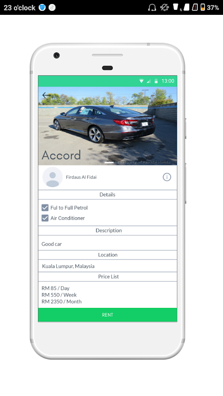 As ride hail services growing, car owners have option to make use of their personal car. When they have spare time, they can utilize their cars to generate income through ride hailing service. This activity is proven to help middle class people to generate fair amount of money. Ride hailing service, however, requires car owner to be present. Thus comes the idea of helping car owner promotes their own car for renting purpose.
