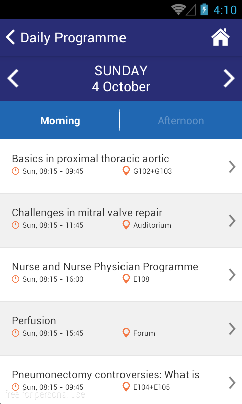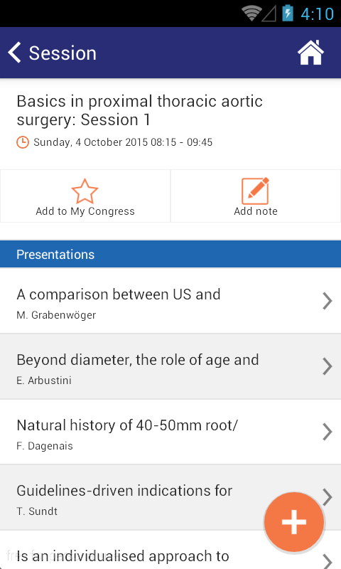 Access all sessions, presentations, abstracts, exhibitors and maps. Browse sessions by day or by topic. Create your personalised congress programme. Find practical meeting information. Stay informed: receive the latest news and follow the discussions on the #EACTS2015 Twitter feed.