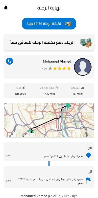 قم بتقييم السائق بعد انتهاء الرحلة.