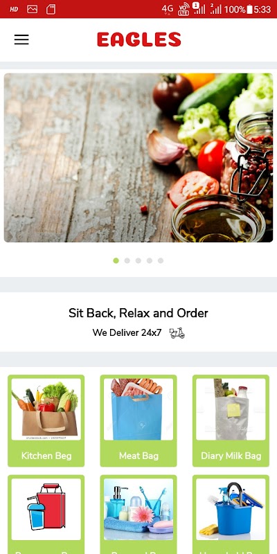 We provide fresh raw Meat and Fish all of which are stored, cut and packed separately for each variety of meat and fish. ‘EAGLES’ also enables customers to order groceries with various options of Rice, Pulses, Edible oil, Cereals, Packaged products, Beverages, Personal care products, Households etc. Choose your products with ease and we deliver all your needs.