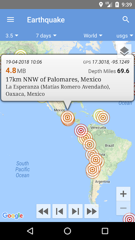 Earthquake is an app for Android devices that shows real-time earthquakes occurred around the world.