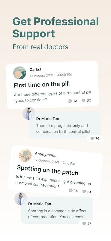 Discuss sensitive and intimate topics relating to women’s health, ask questions anonymously and interact with members of the community to get support.