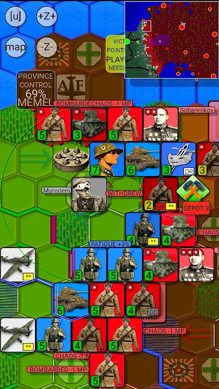 + Tactical Areas and MPs: Some hexagons are connected together, forming slowly evolving tactical areas, and you can move between such hexagons using tactical MPs instead of regular MPs. This opens up a completely new tactical dimension.