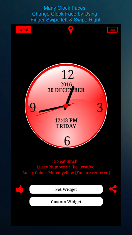 • Both Digital watch and Analog watch allows user to set as their widget on their personal screen by tapping on "Set as Widget" button in app;