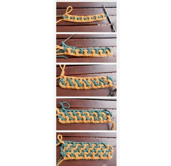As you keep stitching, the v shape becomes more and more prevalent. When done all in one color and tightly stitched you get an interesting, chevron-esque pattern.