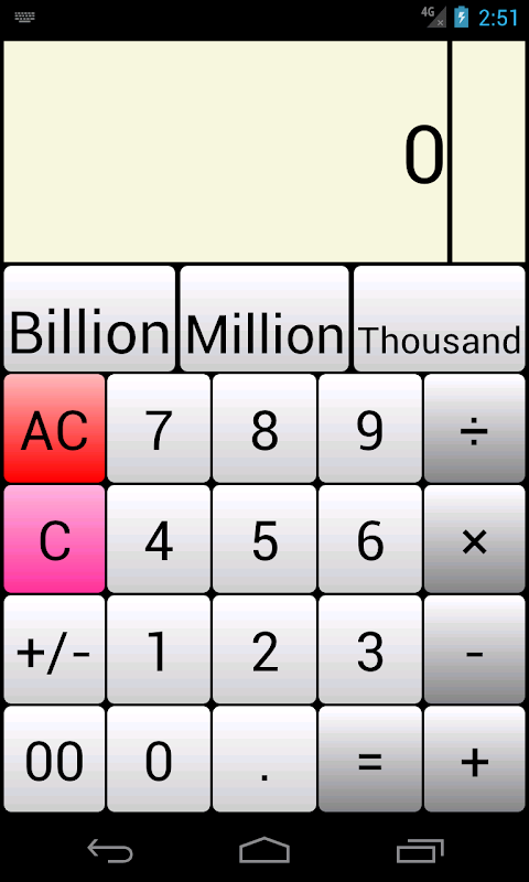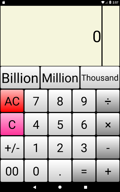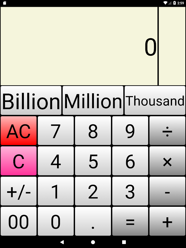 ・Buttons for Billion, Million, and Thousand that assist with input.