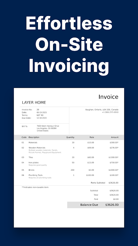 ✓ Automatically generate invoices from estimates with one tap