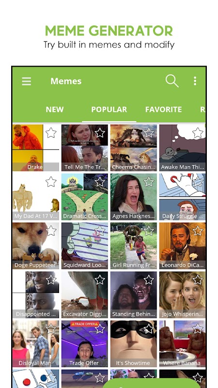🌟 Mark a template as favorite, you can use it later to create meme with one click.