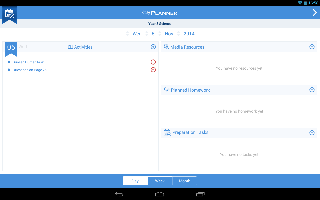 With Easy Planner you can import resources from various cloud based services such as Dropbox, Google Drive, OneDrive. You can also easily import URL's, photos, videos and much much more. You can also add preparation tasks and various homework activities.