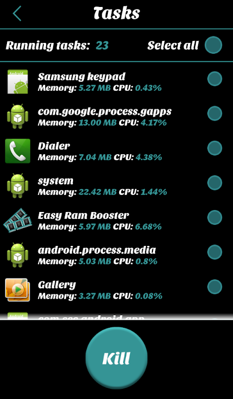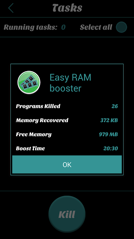 The application uses a sophisticated technology to optimize the performance of your device. It automatically kills low priority tasks every 2 hours. For maximum results you should do a manual boost once a day.