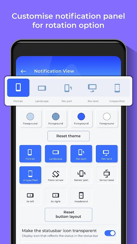 A complete control of screen rotation of your phone. You can preset screen orientation app wise for easy usage of apps. Like a video player that you do not want to open in portrait mode and would like it open the app in landscape mode, that you easily select the app to open in landscape mode. Also you get multiple option to manage screen rotation with sensors. Shortcut usage with notification panel controls, floating button control or widget control of screen orientation.