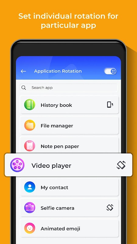 2. App wise Screen Rotation can be also implemented on particular selected app.