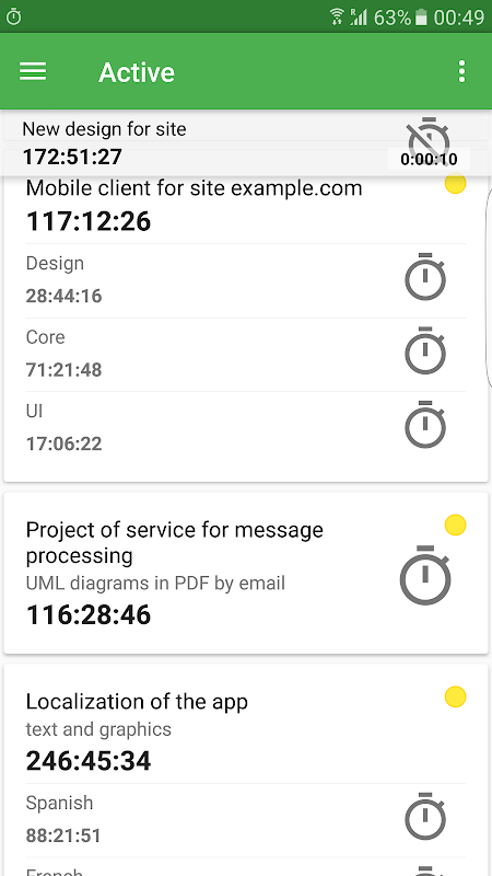 With Easy Time Tracker you can track time of multiple tasks and subtasks.