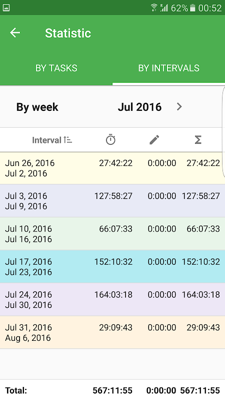 • Statistic reports by tasks and by intervals;