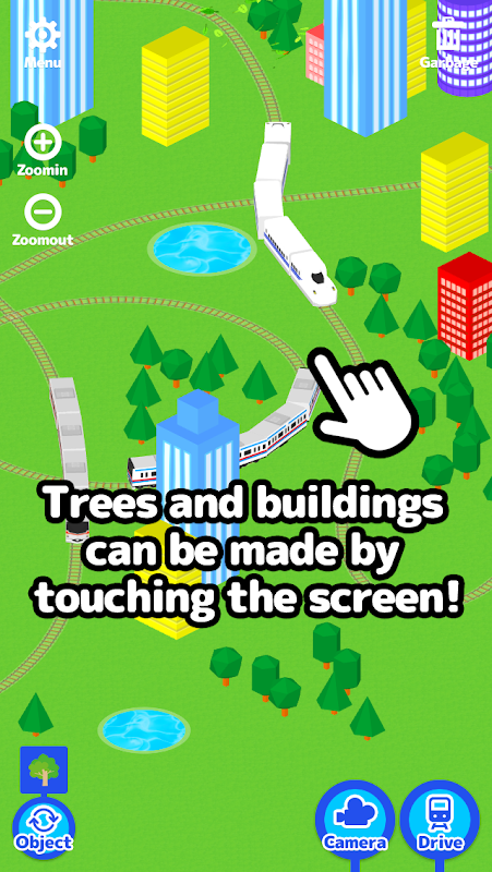 -If you tap the screen, buildings, trees and puddles will be placed. (Change with the bottom left “placement” button.)