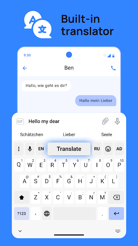 Multilingual keyboard (80+ languages) that translates instantly in chats.