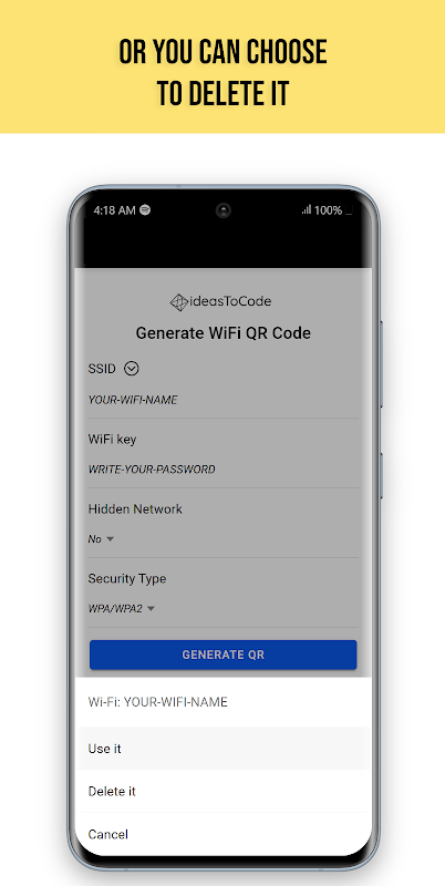 Easily generate QR codes for Wi-Fi with automatic saving!