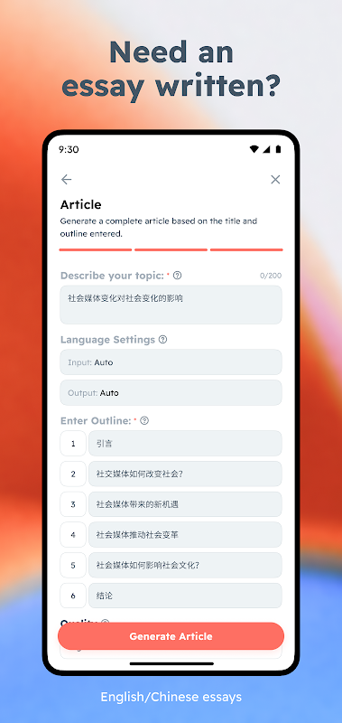 EasyEssay is a powerful tool for writers of all levels. It can quickly generate an article, rephrase a sentence, construct a paragraph based on a given topic sentence, and provide relevant citations. This is a great resource for students and professionals alike, as it can help save time when researching and writing. In addition, the accuracy and reliability of EasyEssay's outputs are highly dependable, making it an invaluable asset for any writer.