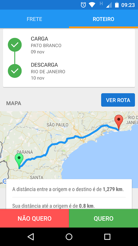 # Aceite de oferta do embarcador diretamente pelo aplicativo, sem necessidade de contato telefônico.