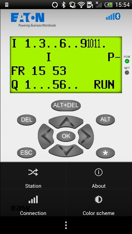 The easyRemote Display App provides simple and fast remote access via Bluetooth to control relay easy800 with a smartphone. Users can view text and values, change parameters, check and edit the circuit diagram, set the date and time and change the operating mode. The easyRemote Display App runs on smartphones with Android Version 2.2 or higher.