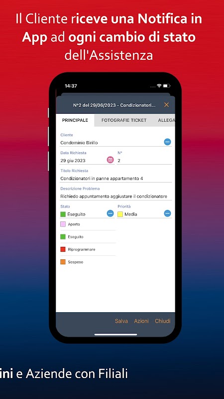 The only Professional App in Italy where you receive your Customers' Assistance Requests and with which you also fill in the Field Work Reports.