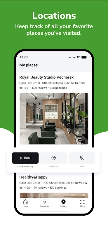 • Manage your bookings directly from the app’s calendar