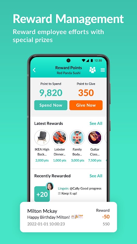 - Monthly points can be auto-refreshed for employees to reward their colleagues.