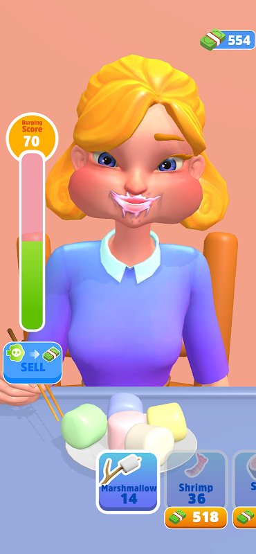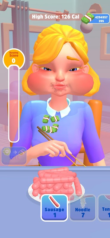 Eat your meals to earn money. Buy new meals and burn your calories to earn more! Watch out for how full you are and burp to make more space for future meals.