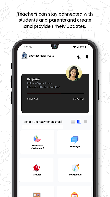 The Ebenezer Marcus CBSE application helps to connect management, teachers parents and students of Ebenezer Marcus International school and junior college. With this application, not just the teachers and parents, but also the guardians and grandparents can log in and view their ward's information. If a parent has more than one child studying in the same school but different classes, they can access the details of all their children from the same dashboard.