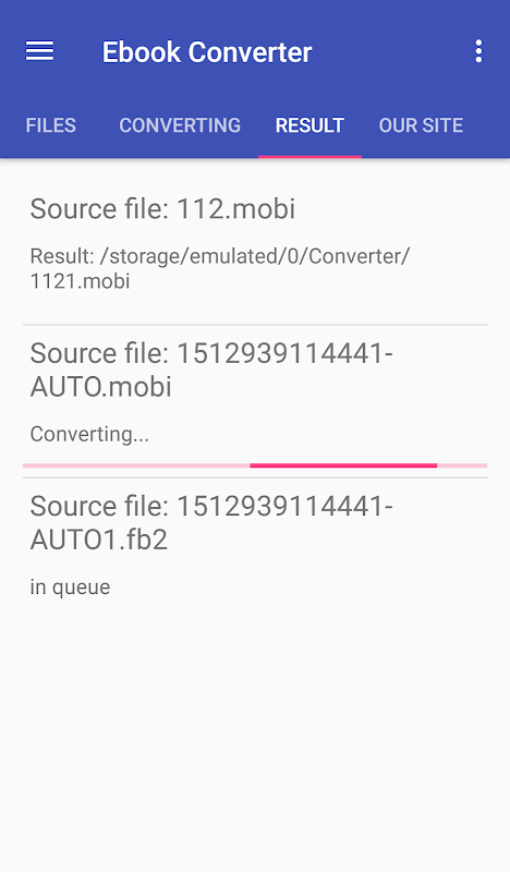 Simply select the files which you want to convert and click “Convert”.