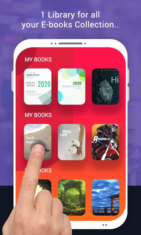 E-book reader will find all the eBooks downloaded on your phone. Select the book that you want to read. Customize it with your choice of text color, text font, background color, auto adjust light to give you best reading experience on your phone or tablet. You can also adjust the layout of the page and text. All settings can be saved to use it every time you read an eBook.