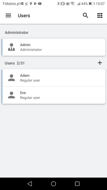 • program user codes and their rights in the system,