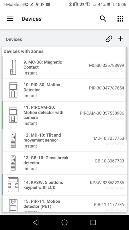 • add wireless sensors, keypads and remote controls simply by reading QR codes,