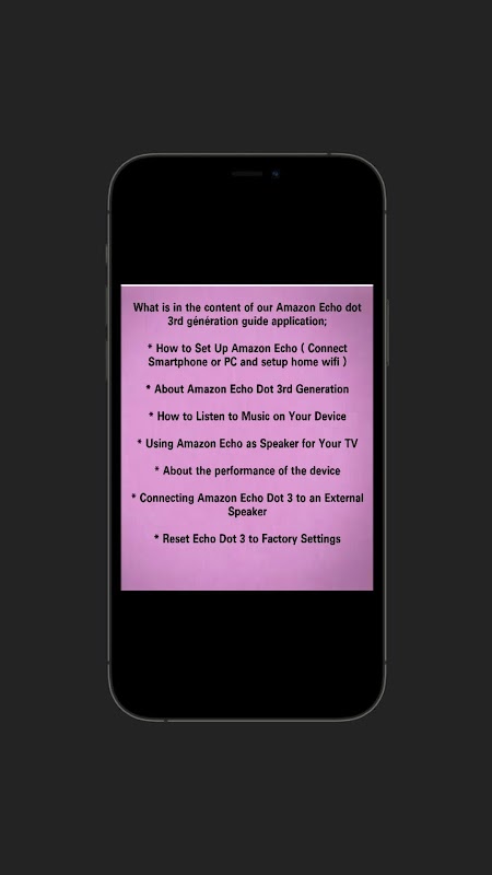 Note: the app echo dot is a guide, is not affiliated with or approved by Amazon. Download this guide to learn about Amazon Echo dot 3rd Génération.