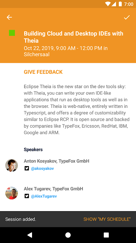 Improve the user experience of giving feedback during the conference.