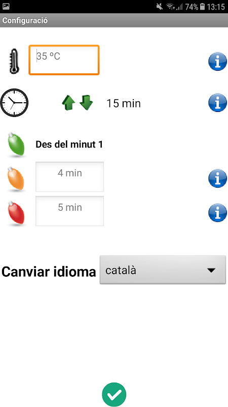 · L'app Ecoshower també disposa de 3 idiomes a escollir: català, castellà i anglès.