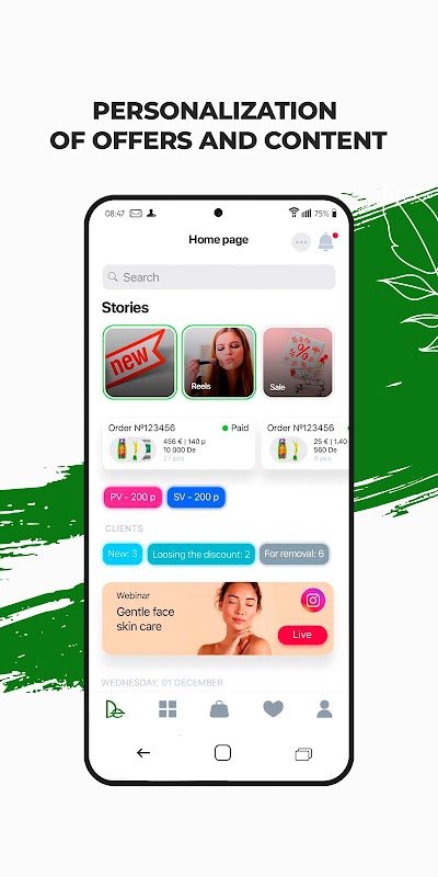 Analyse your business indicators, manage your structure, register new clients, share links with recommendations, and communicate with your team.