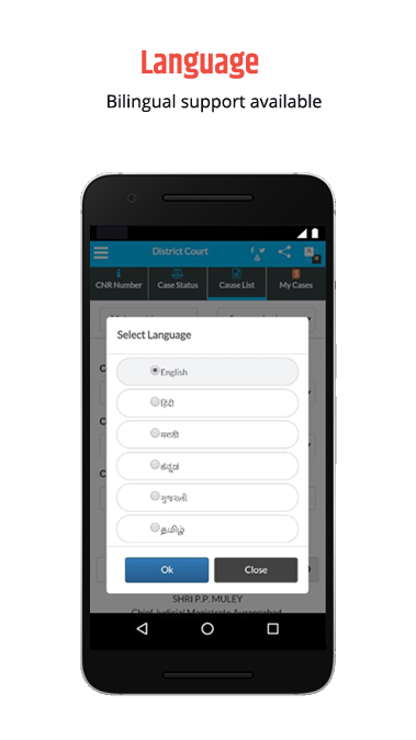 • The App provides information related to Cases filed in the Subordinate courts and most of the High Courts in the country.